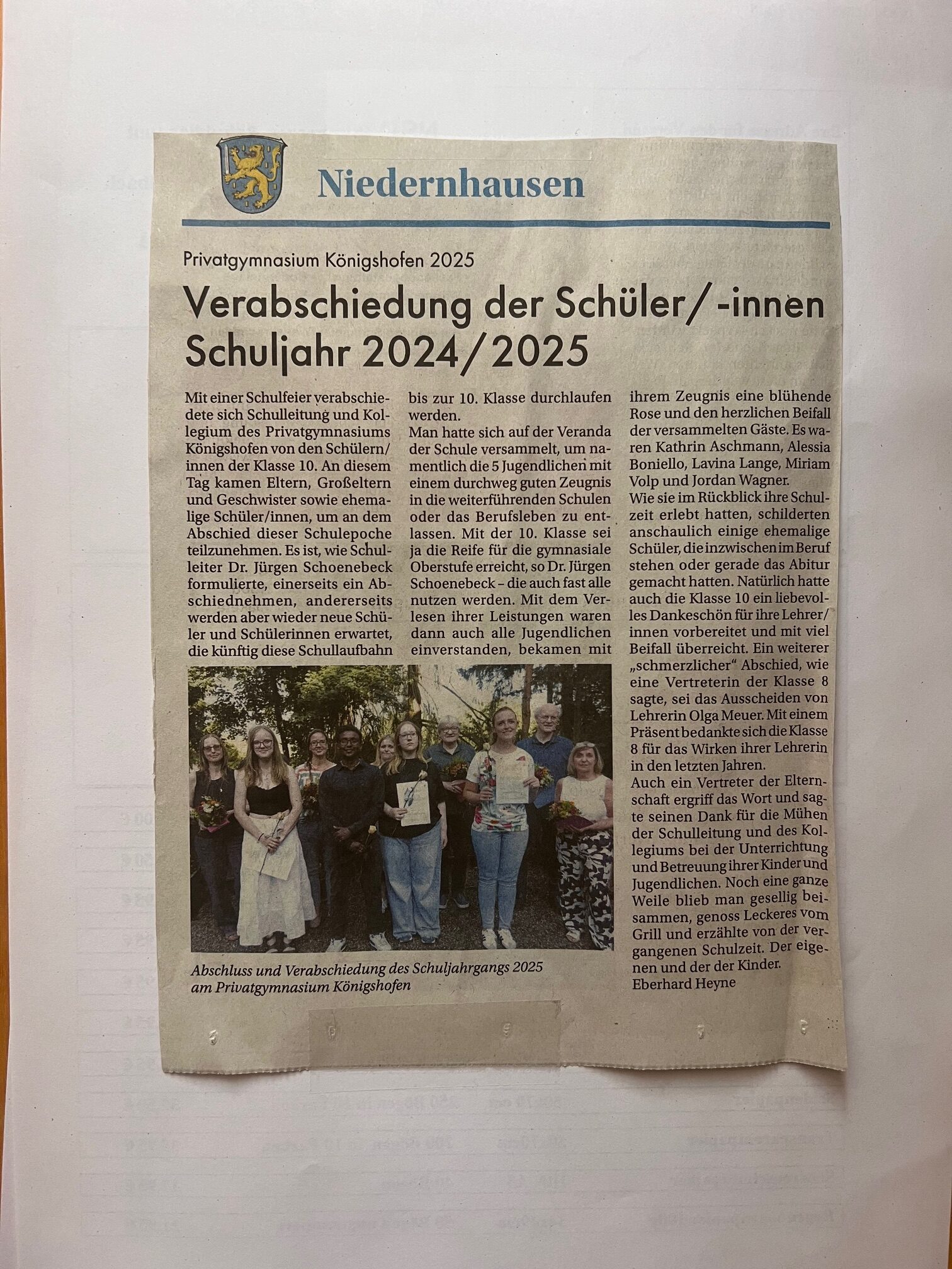 Traditionell endet das Schuljahr am Privatgymnasium Königshofen mit einem Abschiedsfest. Am 21.06.2018 um 18:00 Uhr war es dann soweit. Nach einer kurzen Ansprache von Dr. Schoenebeck wurden die diesjährigen Absolventen unter donnerndem Applaus gefeiert. Alle konnten gute Abschlussergebnisse vorweisen und bedankten sich ausgiebig bei den Lehrerinnen und Lehrern.