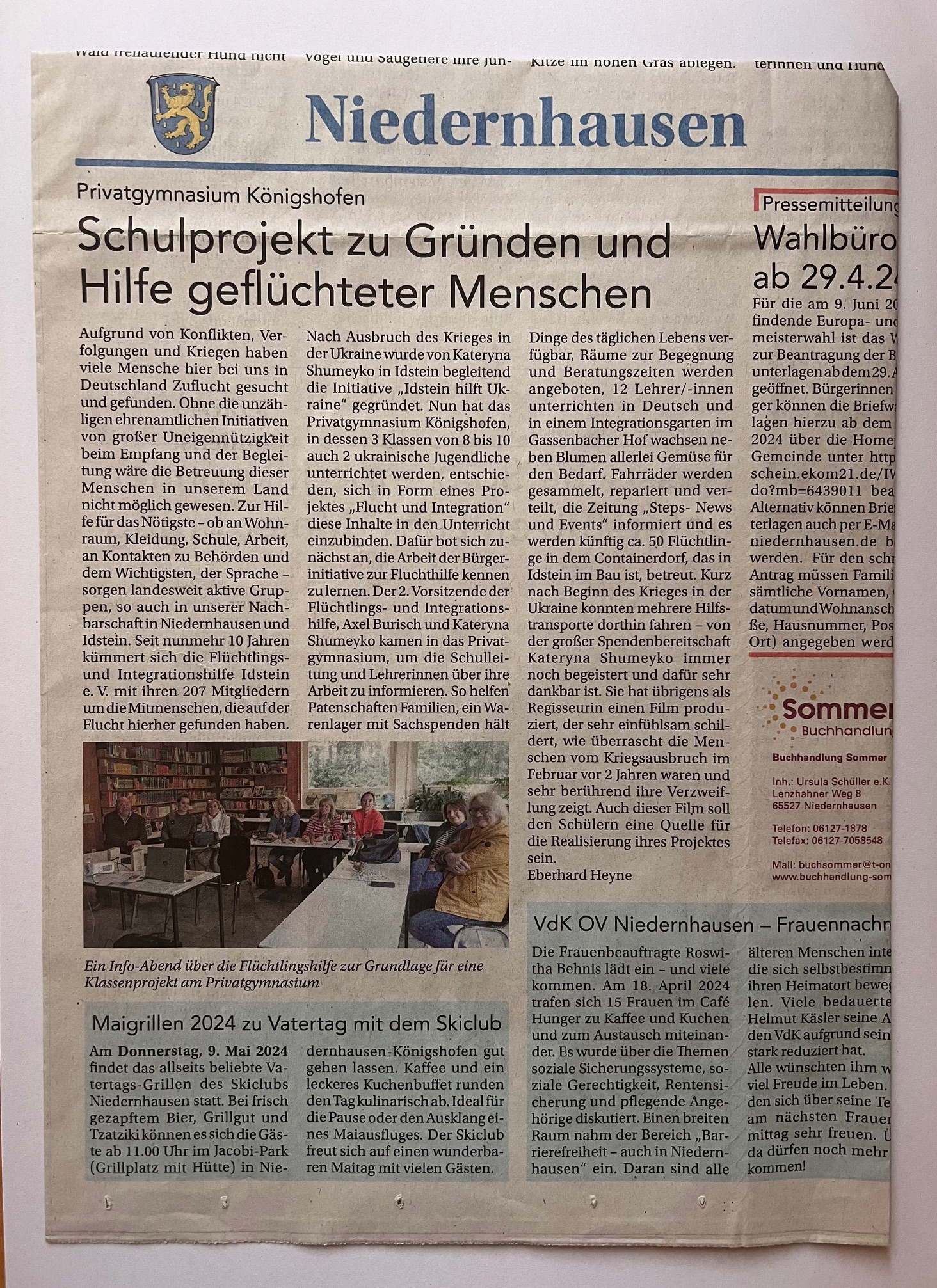 Zeitungsartikel aus dem Jahr 2024 – Download 1 Download 2